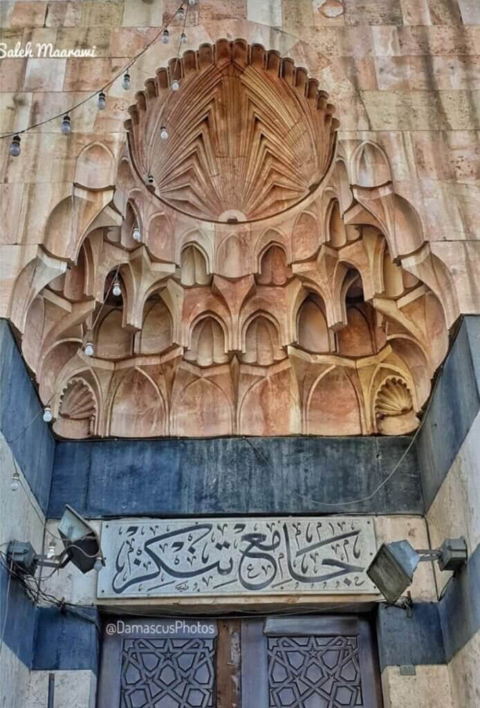 ومن المفيد القول ان تربة الأمير ” تنكز” تقع في مدخل الجامع الشرقية ، وهي مغطاة بقبة تعلو على رقبة لها طبقتين، السفلى مثمنة والطبقة العليا لها ستة عشر ضلعاً، تشكل آيةً من آيات الفن المعماري الإسلامي العريق، وهذه التربة اقرب ما تكون الى نماذج الاضرحة الايوبية التي تغطى بقبب.