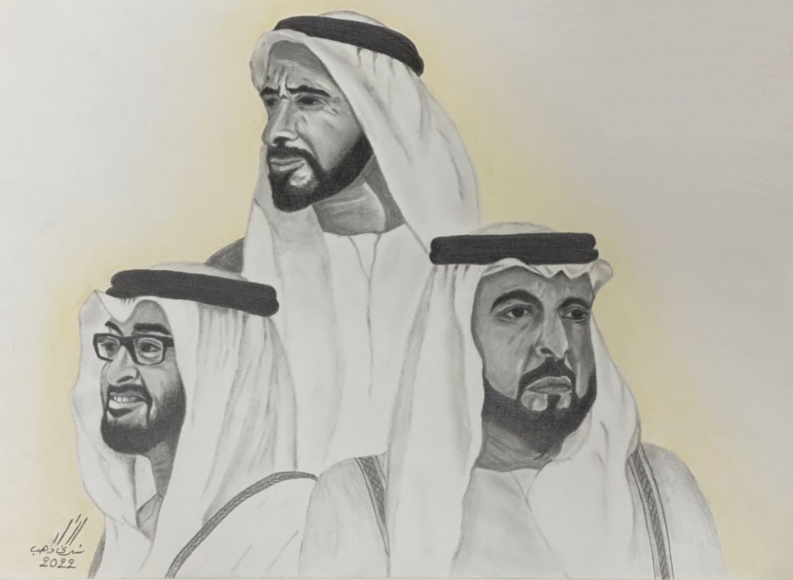 لوحة فنية لقادة الإمارات العربية المتحدة بريشة الفنانة التشكيلية والرسامة العراقية // سرى ذهب