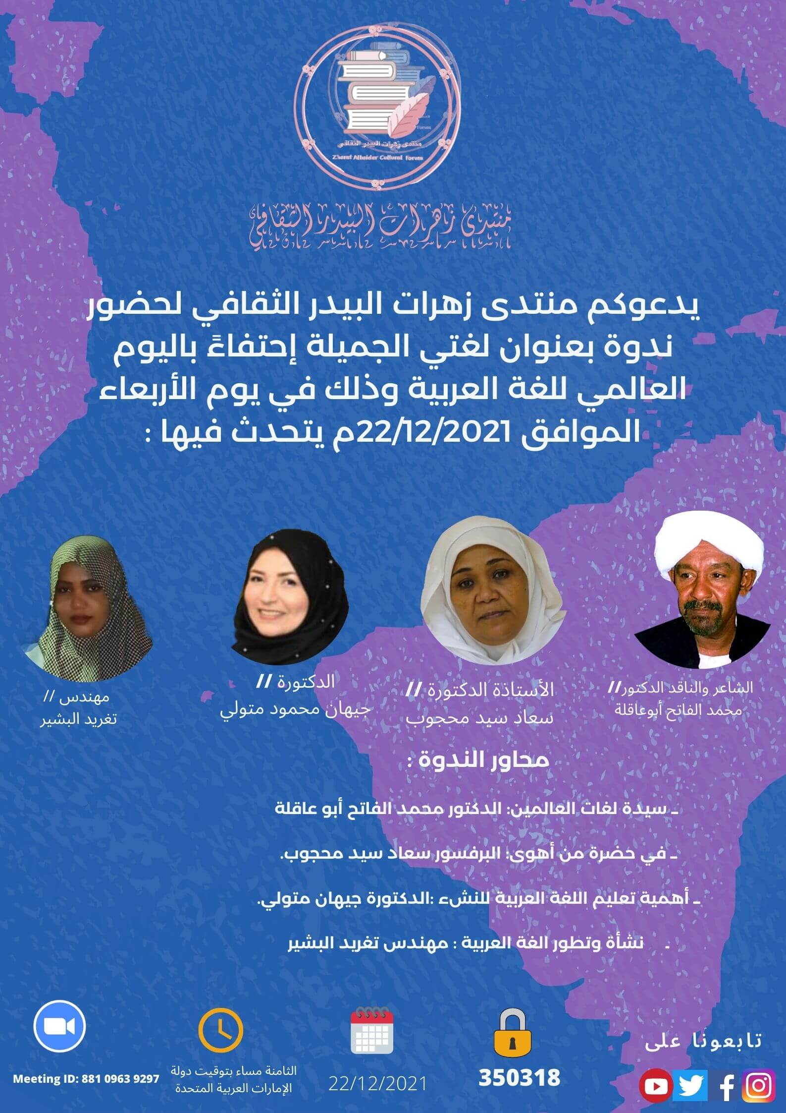 الرئيسية ثقافة ندوة اليوم العالمي للغة العربية 2021// البروفسور سعاد سيد محجوب والشاعر الدكتور... ثقافةحوارات ولقاءات ندوة اليوم العالمي للغة العربية 2021// البروفسور سعاد سيد محجوب والشاعر الدكتور محمد الفاتح أبو عاقلة //الدكتورة جيان متولي و المهندس تغريد اللبشير بواسطة المحرر - أكتوبر 23, 2022 0 512 FacebookTwitterPinterestWhatsApp المواد ذات الصلةأكثر من مؤلف التحليق فوق القمم بمركز بثينة الثقافي ــ متابعة : بدر الدين العتَّاق مختبر بيركلي للتفكير النقدي: بوابة إلى عالم العقلانية رحلة عبر التاريخ: بدء العصر الحديث ترك الرد إلغاء الرد من فضلك ادخل تعليقك من فضلك ادخل اسمك هنا لقد أدخلت عنوان بريد إلكتروني غير صحيح! الرجاء إدخال عنوان بريدك الإلكتروني هنا احفظ اسمي والبريد الإلكتروني وموقع الويب في هذا المتصفح للمرة الأولى التي أعلق فيها. Δ